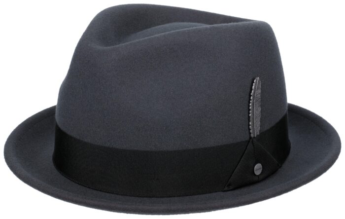 - Questo player, parente stretto del pork pie, sfoggia una tesa sottile con bordo delicatamente, che gli conferisce la sua versatilità estetica. Questa forma moderna e intramontabile si riflette inoltre nella corona incavata.